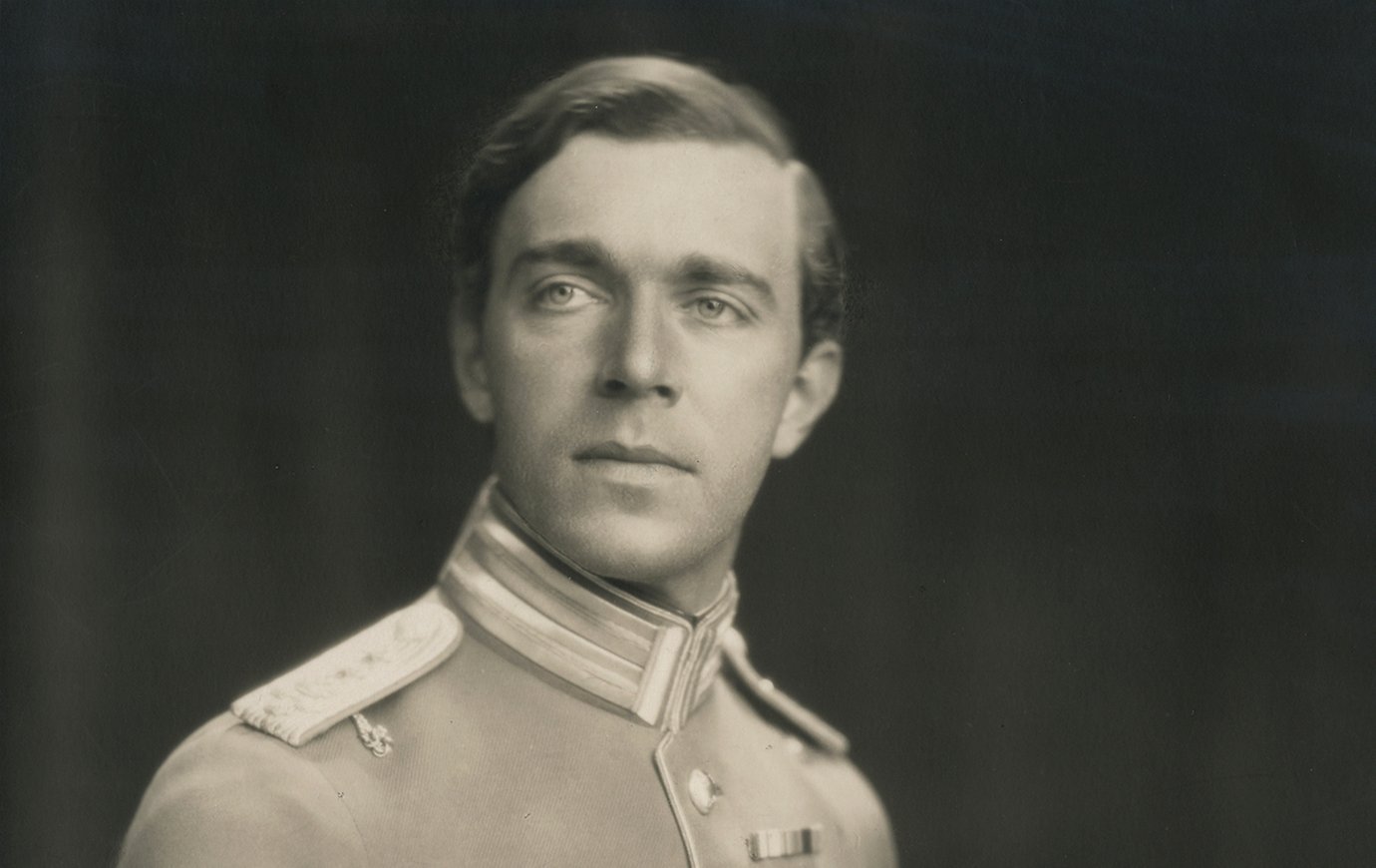 Porträtt av HKH Gustaf Adolf från 1933, ordförande för Sveriges Ungdomsberedskap 1942–1947. Foto ur Bernadottebibliotekets arkiv.